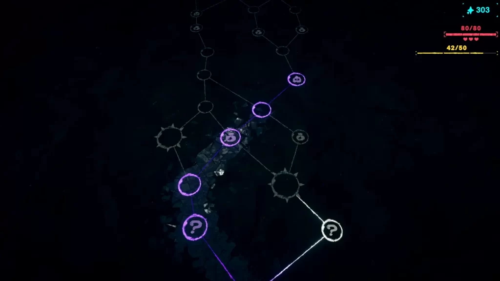 ¿Y cómo entras a la tienda? Fácil: cada Esquirla tiene un mapa donde eliges tu ruta, tipo tablero de Inscryption (video en el canal). Algunos caminos vienen con modificadores que te pueden ayudar… o fregar. Desde que empieces con menos vida hasta que suelten un chorro de chispas. La neta está curado porque le da ese sabor de “a ver qué me toca en este run”.